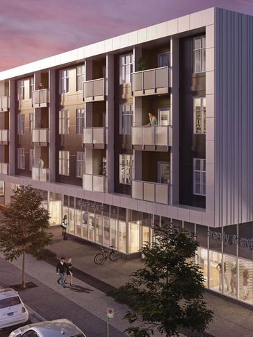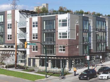 Modern four-storey wood-and-concrete development in Vancouver. Features thoughtfully designed interiors and a range of practical amenities.
